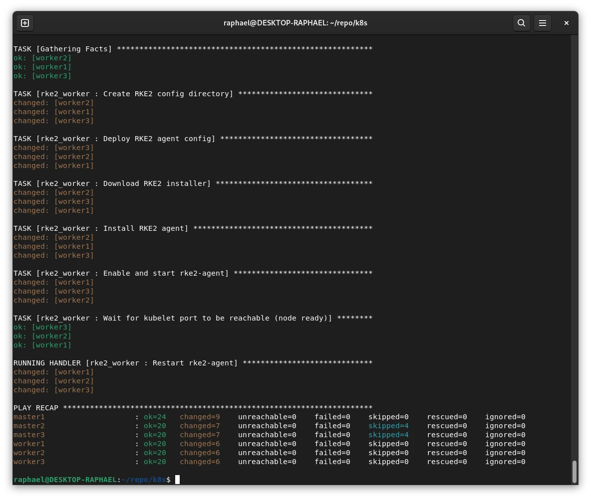 Today, I quickly generated an Ansible playbook using Claude.AI ๐ค that installed a Kubernetes cluster across 6 VMs in my homelab ๐ . On each of the 3 physical servers, I now run 2 VMs โ one Master and one Worker. This serves as an initial cluster setup, and in the future I may add more Worker nodes for dedicated tasks, e.g., Longhorn storage ๐๏ธ.